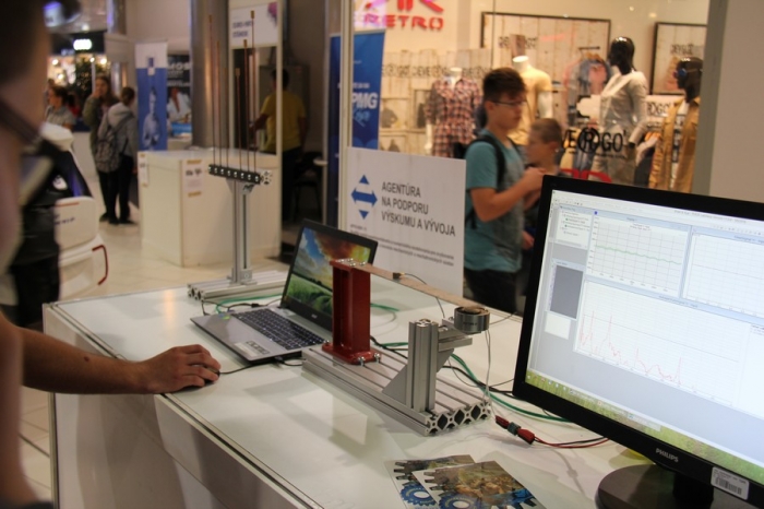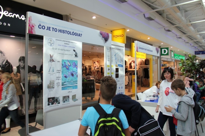 V priestoroch obchodného centra Atrium Optima ste videli viac ako 70 vedeckých stánkov a prezentácií košických univerzít - Technickej univerzity, Univerzity Pavla Jozefa Šafárika, Univerzity veterinárskeho lekárstva a farmácie v Košiciach, ale aj Prešovskej univerzity a výskumných ústavov SAV. Zdroj: Emil Gažo