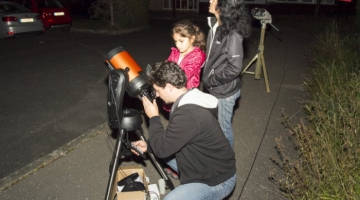 Komorné podujatie nášho festivalu v Astronomickom ústave SAV na na Starolesnianskych lúkach prilákalo opäť zanietených návštevníkov. Pre školákov boli nachystané rôzne animácie, interaktívne debaty a cez program Stellarium mohli vidieť nočnú hviezdnu oblohu. Popoludnie bolo venované napr. aj diskusiám o čiernych dierach, či o vzniku vesmíru. Veľkému záujmu sa samozrejme tešili ďalekohľady a sledovanie objektov nočnej oblohy. Zdroj: Peter Handzuš